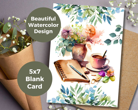 Watercolor Greeting Card - Blue Bouquet with Bee