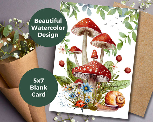 Watercolor Greeting Card - Mushrooms and Snail Friend