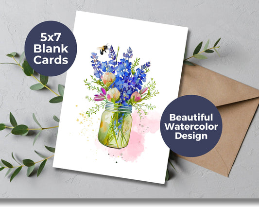 Watercolor Greeting Card - Blue Bouquet with Bee