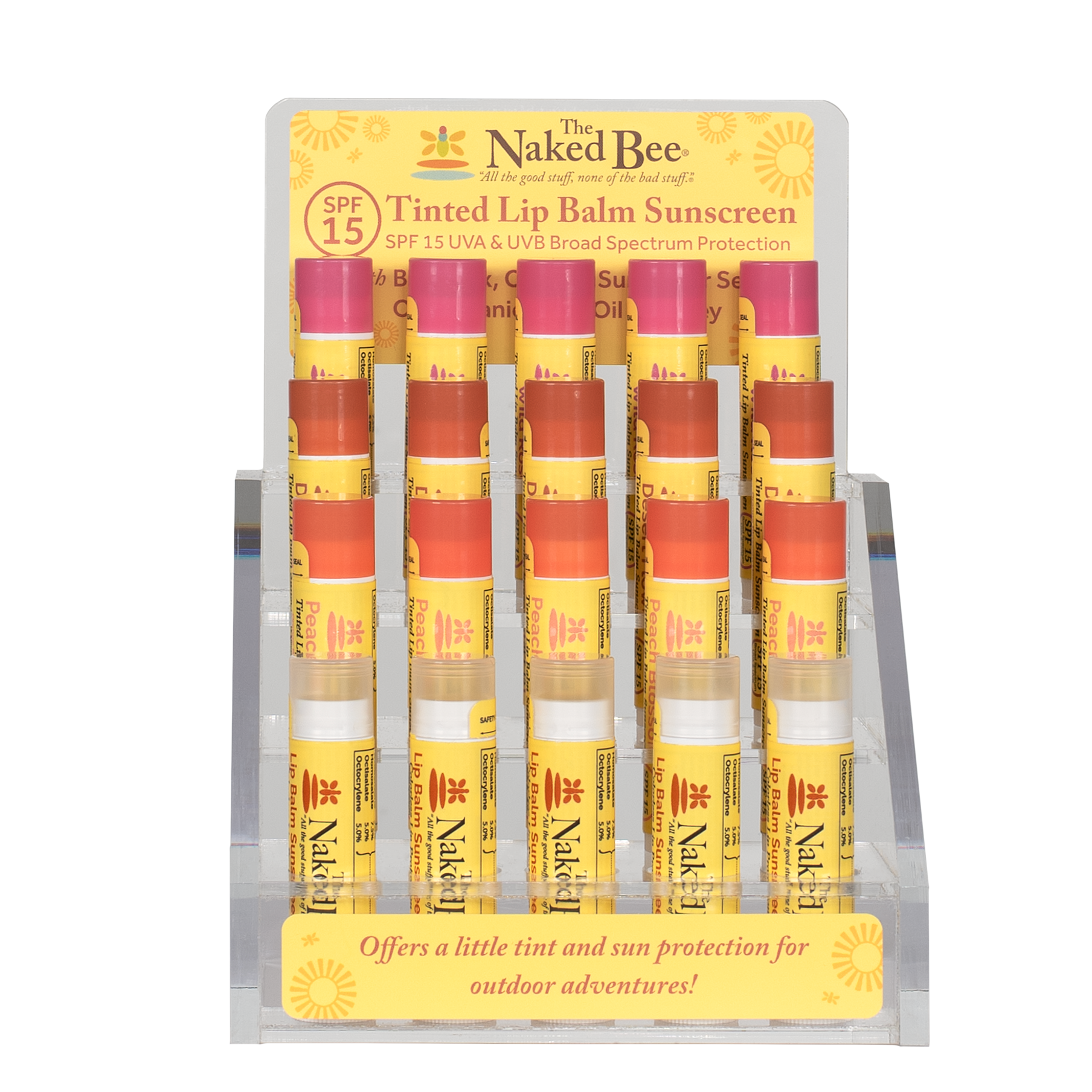 The Naked Bee Tinted Lip Balm with SPF 15 adds a hint of natural-looking color while helping protect lips during time outdoors. Available in Wild Rose, Peach Blossom, Desert Flower, or Colorless, each shade glides on smoothly with a soft orange blossom honey flavor. Made with nourishing beeswax, it leaves lips feeling comfortable, hydrated, and never sticky.