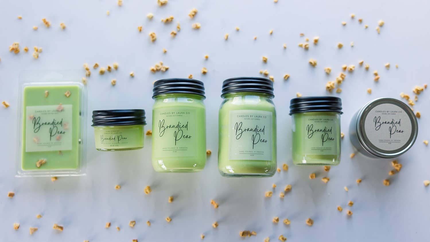 Made with natural soybean wax, cotton wicks, candle dye, and clean fragrance oil. Hand poured.
