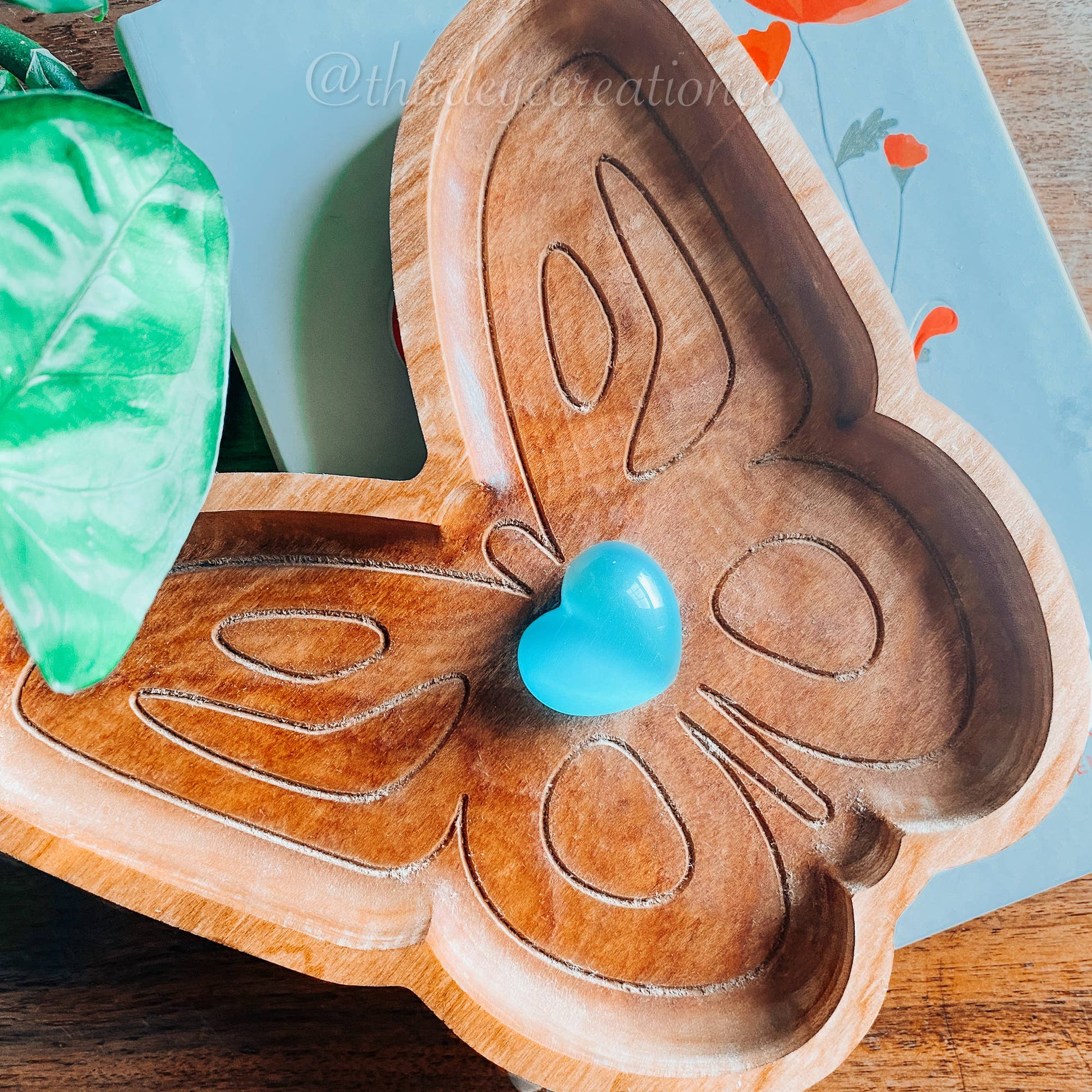 Our Butterfly Trinket Dish is a handcrafted hardwood catchall that brings a touch of nature-inspired charm to any space. Perfect for holding jewelry, crystals, keys, or small décor, this versatile piece fits beautifully into boho, nature, and wellness-themed collections. Each tray is finished with a protective seal that highlights the natural beauty of the wood. Currently available in natural finish.