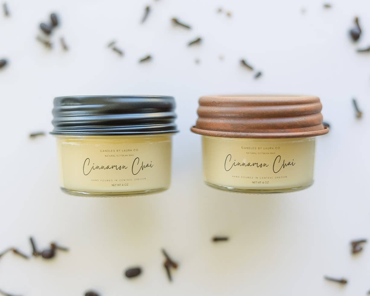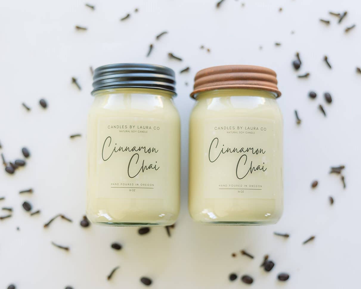 The smell is so delicious you can almost taste it. Relax to the wonderful smell of freshly brewed chai. Comforting blend of black tea, cinnamon, and sweet vanilla. A nostalgic scent for fall or any time of the year. While it has year-round appeal as a bakery or coffeehouse fragrance, this scent creates an especially warm and inviting feeling during the fall and holiday season. Bring this comforting, spicy scent home with you in canning jars with a primitive black screw-on lid.