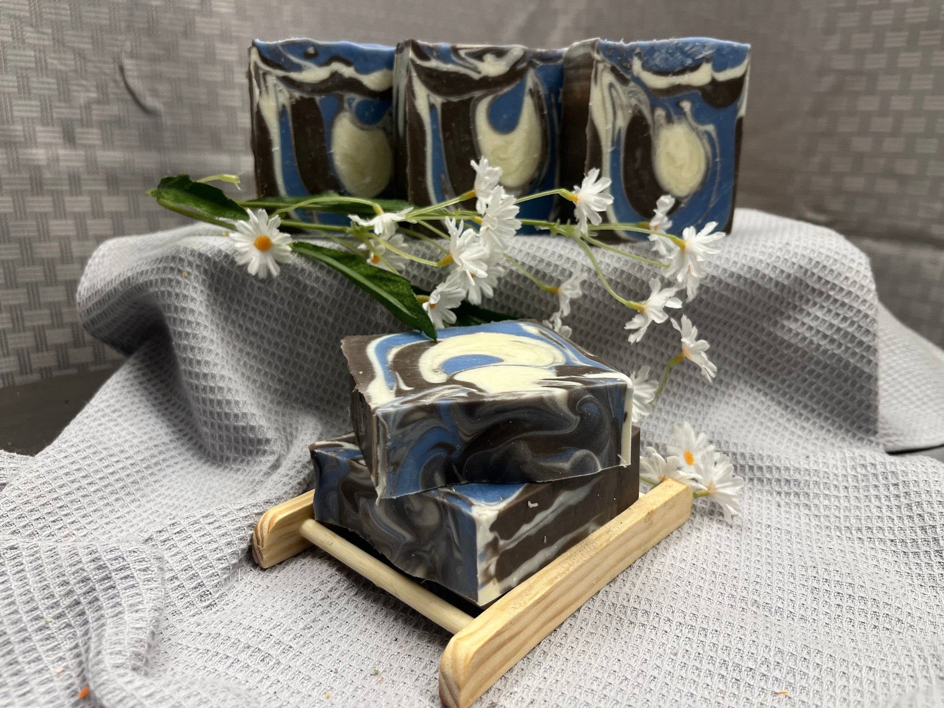 Whether you're looking for the perfect soap for the man in your life, or you like more 'cologne-like' scents yourself, then this is the one for you. This soap uses "The Perfect Man" fragrance, which begins with fresh, daring notes of Japanese grapefruit, bergamot, and lemon; followed by middle notes of peppercorn, ginger, jasmine, aquatic marine notes, and a hint of peppermint; sitting on expensive base notes of natural patchouli, cedar, vetiver, labdanum, and frankincense. This is a 100% vegan soap. Handmade in small batches. Variations in bars and lot releases to be expected.