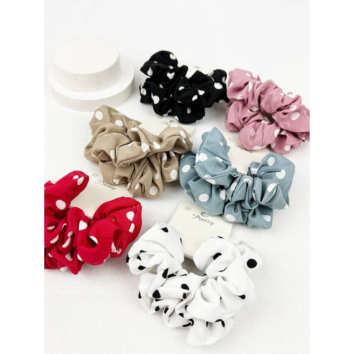 These adorable polka-dot scrunchies come in multiple colors to match any outfit! Each pair is identical - wear one in your hair and one on your wrist to match!