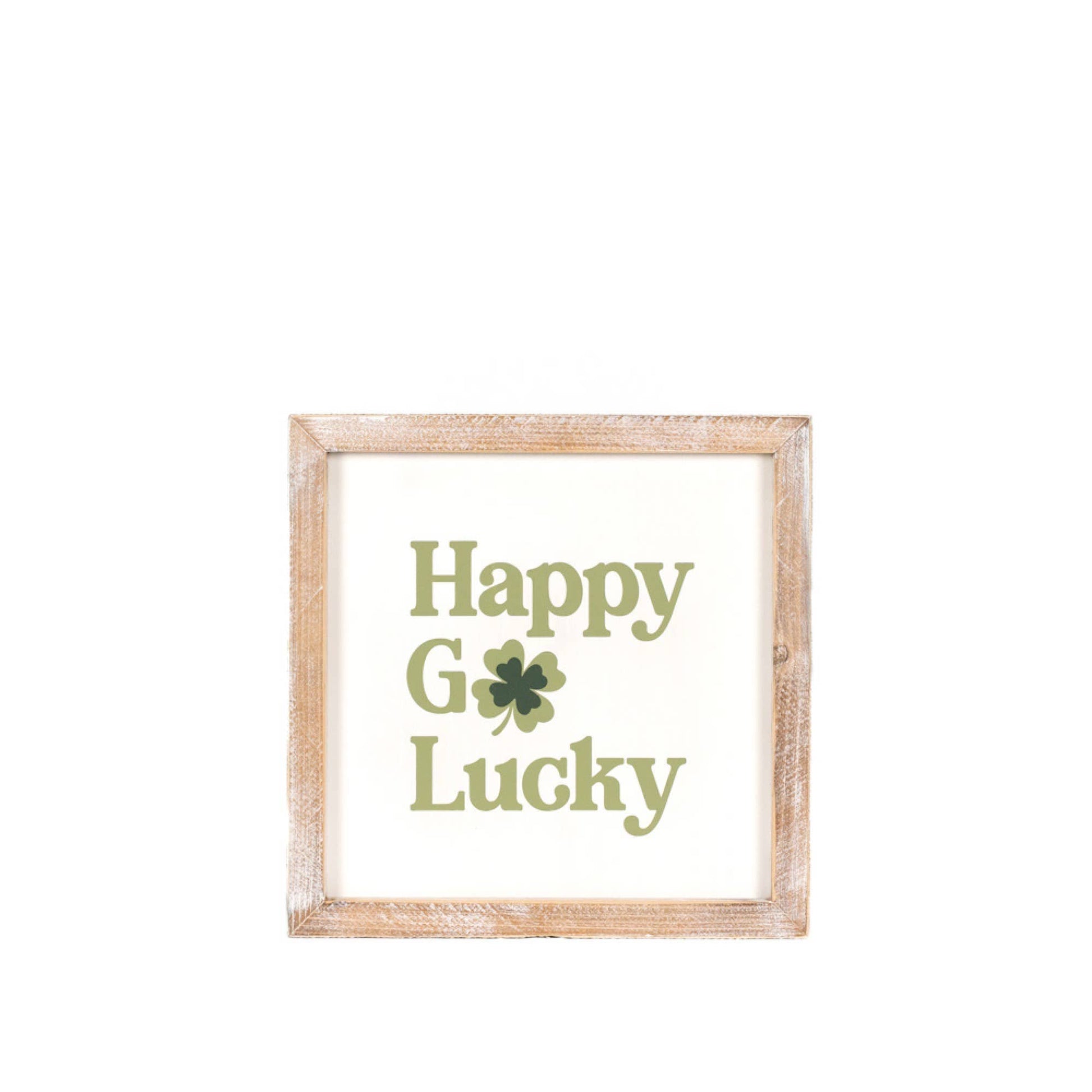 Reversible signs are so fabulous! One sign - two holidays. With just a flip, go from Valentine's Day decor to St. Patrick's Day decor. This one says "Happy Go Lucky" on one side, and "I love you" on the other. Sign stands up, so can be used on table top or trays - or hang. 10x10x1.5 reversible wood frame sign