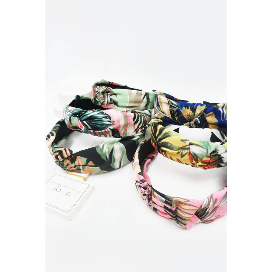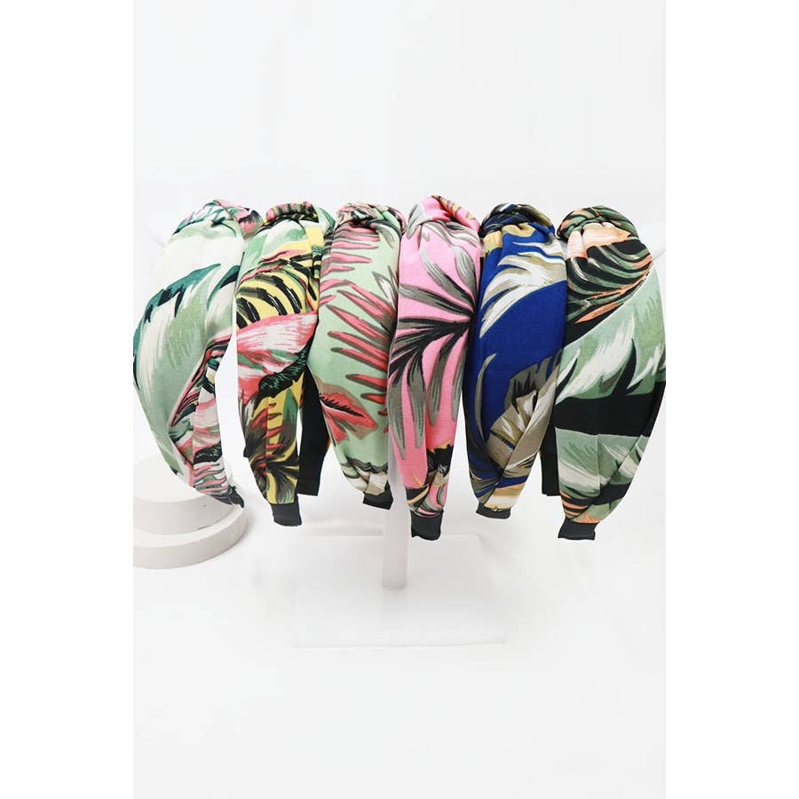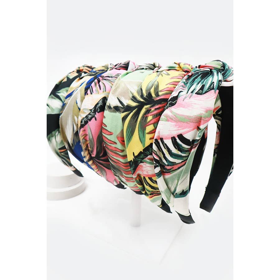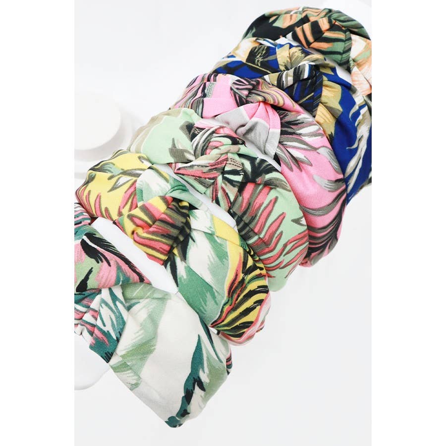 Add a touch of paradise to your look with our Tropical Printed Center Knotted Headband. Featuring a vibrant tropical print, this headband is perfect for bringing a splash of color to any outfit. The center knot detail adds a chic twist, making it an ideal accessory for casual outings or beach days.